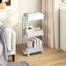 Crafted from a sturdy aluminum alloy frame, this mobile storage trolley boasts durability and sturdiness, making it a perfect addition to any room in your home or office. The top storage box comes with a transparent lid and 3 divided compartments, offering a unique way to keep your items organized and easily accessible. With its multi-functional design, this utility cart is versatile enough to handle anything, while the anti-falling design ensures your belongings stay safe. Rolling this cart is a breeze thanks to its 4 universal wheels, with 2 lockable wheels providing added stability when needed. Furthermore, the assembly of this storage organizer is simple and tool-free, allowing you to set it up in no time. If you are looking for such a product, do not hesitate to buy it! Upgraded Aluminum Alloy Frame: Supported by a high-quality aluminum alloy frame, this 3-tier utility rolling cart promises superior durability and sturdiness. The mobile storage organizer provides a perfect storage solution for your living room, bedroom, kitchen, or office. Unique and Practical Top Storage Box: The top box of this rolling utility cart features a transparent lid and 3 divided compartments, allowing you to customize your own storage solution. This unique addition offers convenience by keeping items within easy reach and neatly separated. Multi-functional Storage Trolley: Designed with versatility in mind, this storage trolley serves multiple purposes. From office supplies to kitchen essentials, its 3-tier ample storage space with anti-falling design protects your belongings well. Furthermore, all the 3 boxes can be easily removed with thoughtful handles. Simple to Move with Wheels: This utility cart features convenient handles and 4 universal wheels that allow you to move it across different floor types. For added stability when stationary, 2 wheels come with locks, offering peace of mind. Easy to Assemble without Tools: Assembling this movable storage organizer is a breeze with its straightforward structure and step-by-step instructions. The click-together structure allows you to set up your new rolling cart without the need for tools, saving you time and frustration.