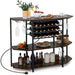 Marrying the durability of metal with the classical aesthetic of quality engineered wood, this wine rack introduces an industrial-style contour into your home. It transcends its primary function, effortlessly transitioning into a bar stand, coffee bar, console table, or an elegant serving buffet to complement various settings from the dining area to a more personal den or study.
