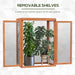 Inside, you’ll find two slatted wooden shelves awaiting your seed trays, pots, and tools. These shelves are not only perfect for organizing your greenery but can also be repositioned or removed to accommodate taller plants, ensuring your growhouse meets the needs of your ever-evolving garden.