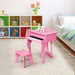 This children piano is made of MDF and birch wood, which is sturdy and stable. Surface with environmentally friendly children's paint is safe without endangering the health of kids. The rear cover is supported with safety hinge to provide better protection for children. 30 keys piano with pleasant sound can promote the development of children's brains while exercising the flexibility of their fingers. And your encouragement and companionship will stimulate children's interests in music. Cultivate Your Little Musician's Music Talent: Constructed of 30 sensitive keys, the mini grand piano will help your little musician have a basic knowledge of piano, inspire them to explore the world of music and enhance the sense of music. Plus, carefully crafted keys with perfect width will promote comfortable finger placement. Professional Design with Music Stand and Lifting Top: Adorable music stand makes it more convenient for kids to read sheet music, which can be also detached easily to fulfill requirement of storage. Features lifting top to show off professional design and flexible bracing piece to provide stable support, the classical piano will be a perfect choice for toddler. Sturdy Wooden Construction and Solid Connection: Constructed of birch wood, the wooden piano legs ensure superior stability and sturdiness. Besides, solid connection allows your baby to play it safely and leaves you no worry of potential risk. In addition, thanks for simple structure, you can figure out how to put it together within short time. Kids-friendly Design: The 30-key mini grand piano adopts environmentally friendly and non-toxic paint to make it exceptionally safe for kids to use and keep long term shiny appearance. Precision workmanship and high-quality materials further enhance reliability.More, smooth edge and rounded corners will protect your children from injury. Comfortable Bench with Appropriate Height: The baby piano toy set comes with a bench to provide comfortable sitting experience. Your little musician can be more immersed in their outstanding performance benefitting from the bench with appropriate height and firm support.