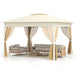 Color: Beige Material: 210D Oxford Fabric, Metal, Mesh Product Dimensions: 338 x 338 x 260 cm (L x W x H) Net Weight: 17 kg Box QTY: 1(May vary by batch) Package Includes: 1 x Outdoor Instant Canopy 1 x Carrying Bag 4 x Wind Rope 4 x Stakes 1 x Instrcution Manual