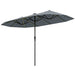 Colour: Beige/Grey Material: Polyester Fabric, Metal Product Dimensions: 380 x 198 x 222 cm (L x W x H) Ground Clearance: 183 cm Net Weight: 8.5 kg Box Qty: 1(May vary by match) Package Includes: 1 x Double-Sided Patio Umbrella 1 x Instruction Manual