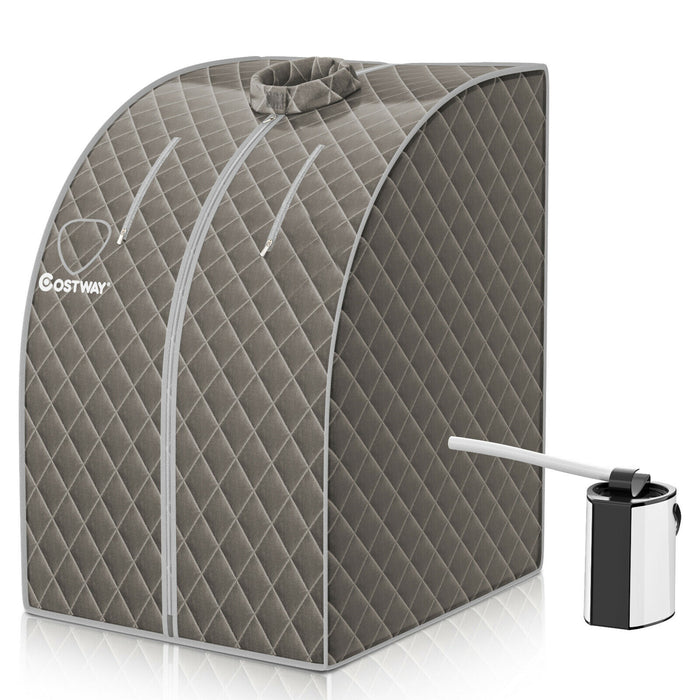 Prioritising your safety, the steamer automatically cuts off power once the water level runs too low. Constructed with robust materials such as Polymer Aluminium Mesh, PVC, ABS and Stainless Steel, you can rely on this product's durability. The Sauna comes in a soothing grey color that adds a touch of elegance to its surroundings.