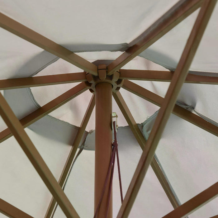 Every aspect of this umbrella reflects its premium build. From the painted wooden frame to the tough polyester canopy, it offers a solid and stylish reprieve from the elements. The vented canopy design not only adds an aesthetic accent but also ensures stability, preventing it from succumbing to blustery days.