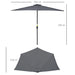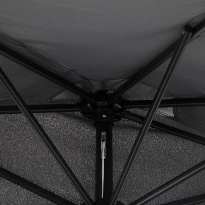 Introducing the Elegant Half Canopy Parasol; forged with an enduring metal framework, it utilizes a quintet of robust ribs to ensure steadfast support. Our premium half circle umbrella is designed with a canopy crafted from high-grade, UV resistant fabric that promises long-lasting shelter from the sun's rays, keeping your afternoons cool and comfortable.