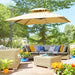 Built with quality materials, the durable aluminum pole and steel frame feature eight connecting ribs, ensuring your parasol stands strong even on breezy days. The crank handle mechanism allows you to open and set your parasol with minimal effort, while the innovative two-tier design provides added ventilation, reducing wind pressure and facilitating heat escape.