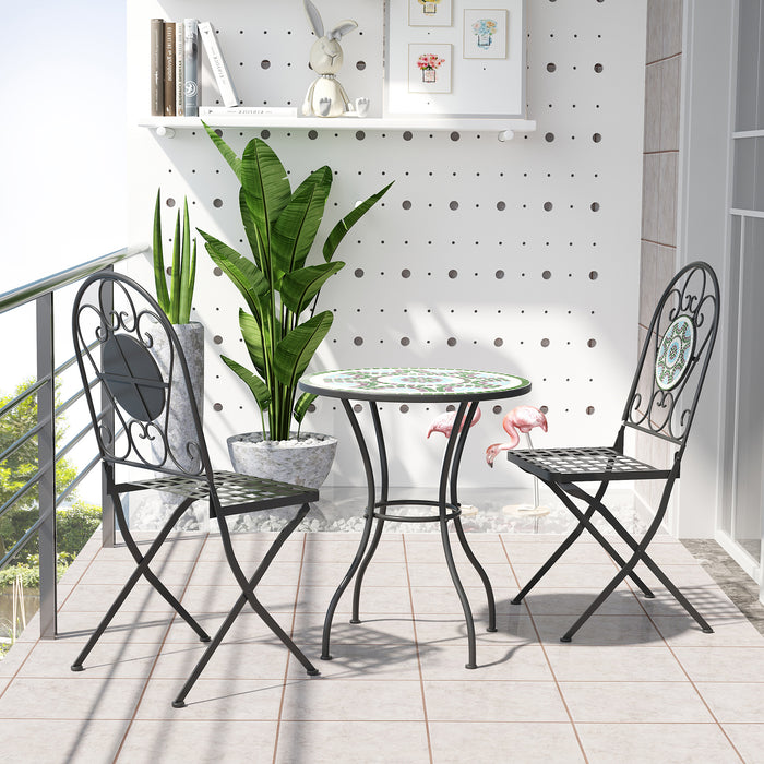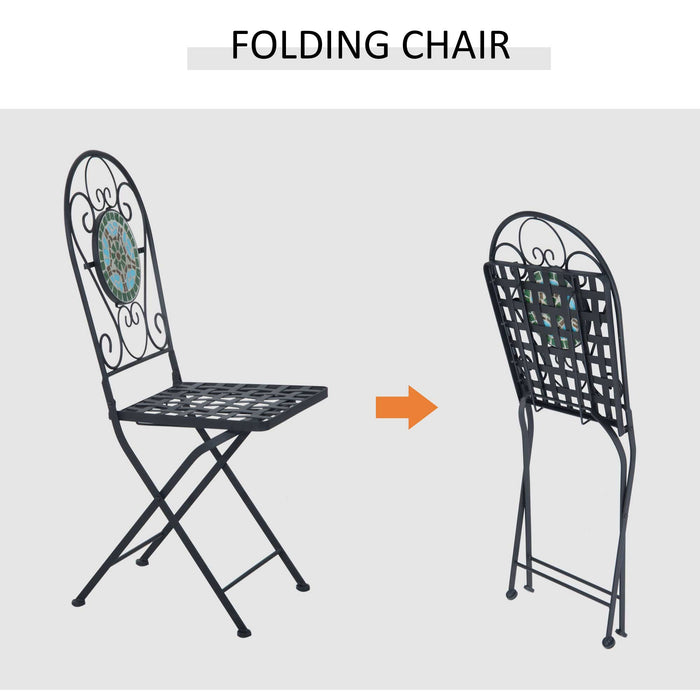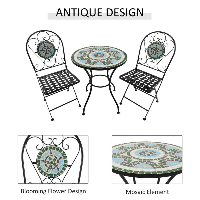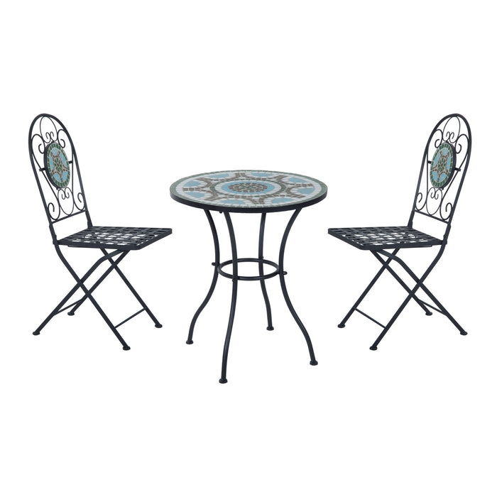 Bring the quaint charm of a Parisian café to your outdoor living space with this elegantly crafted Mosaic Bistro Set. It is the perfect choice for those looking to enrich their gardens, patios, or balconies with a touch of sophistication and comfort. Each set is meticulously adorned with a captivating mosaic design, adding artistic flair to your outdoor refreshment areas.