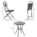 Whether placed by the garden path, on a terrace, or beside a pool, this captivating bistro set elevates your exterior space into an inviting nook for conversation, leisurely drinks, breakfasts bathed in the morning light, or tranquil moments under the stars. Assembly is required, but the effort unfolds into a charming area perfect for savoring life's simple pleasures.