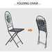 Functionality meets elegance with the set's practical folding chairs designed for space-saving storage. This intuitive feature allows for quick and effortless stowing when the set is not in use, making it ideal for environments where space is a premium.
