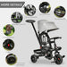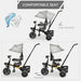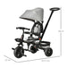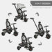 The versatility of our tricycle lies in its 4-in-1 design, which transforms to match the evolving needs of your growing child. It includes a protective canopy, a safety guardrail for peace of mind, and a parent push handle for when they need a little guidance. It's also equipped with ample storage options, making it perfect for toting around daily essentials or favorite toys.