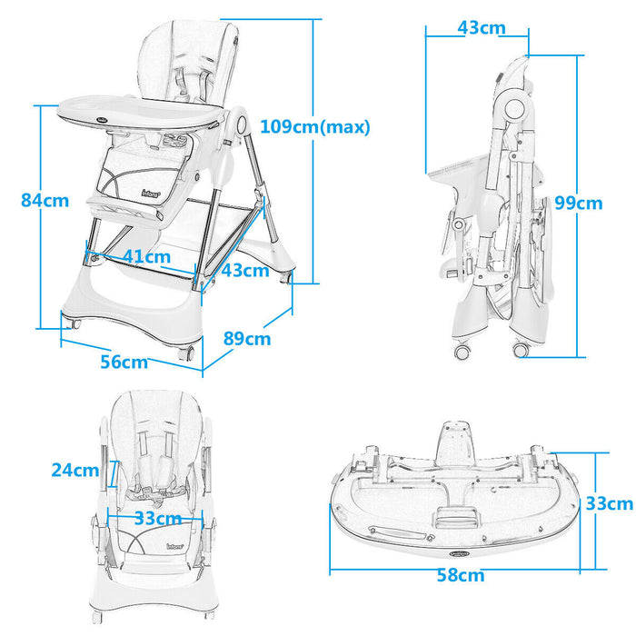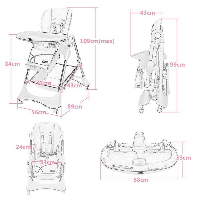 Your baby's comfort is a priority. As such, this chair features multiple adjustment options to accommodate your growing child. From 7 different seat height positions to match tables of different heights, 3 backrest and footrest positions, and a 3-position tray, this chair has it all!