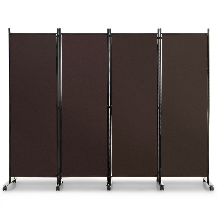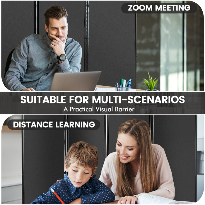 4-Panel Folding Room Divider - Wheeled Separator for Living Room, Bedroom in Black - Ideal for Space Management and Privacy Enhancement