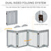 The PawHut Safety Gate features a bilateral folding system composed of four adaptable panels. This intelligent design allows you to modify the configuration to fit a variety of spaces, including wide doorways, cozy halls, and perilous staircases. Additionally, the panels have sufficient space between the bars, giving pets visibility and ventilation without compromising security.