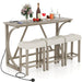 Dive into plush, ergonomic saddle seats, wrapped in linen and cushioned for hours of relaxation. Never run out of charge with our built-in power strip boasting several outlets - perfect for your devices. Crafted from solid wood, it’s a timeless centerpiece. More details, like the rustic wood grain and bentwood accent, add to the appeal. Tuck away stools to reclaim space effortlessly. Versatile for all your gatherings, meals, or work sessions. Elevate your lifestyle today! Bullet Point:Comfortable Seating: Settle into comfort with our ergonomically designed saddle seat cushions. Wrapped with breathable linen fabric and padded with high-density sponge, the button-tufted cushion will provide optimum comfort. Convenient Power Outlet: The bar table includes a built-in power strip, offering a convenient way to charge electronic devices or use small appliances while enjoying a meal or working at the table. There are 2 AC outlets and 2 USB ports, supporting several devices at the same time. Sturdy Wooden Construction: This console table set is crafted with a robust wooden frame for maximum longevity and stability. The solid rubber wood legs and bentwood reinforced structure ensure this set remains a centerpiece in your space for years to come. Space-saving Bar Set: The 3 counter height bar stools can be tucked underneath the table when not in use, saving precious floor space. Thus, this compact set is a perfect solution for small kitchens, breakfast nooks or even behind the couch areas. Versatile Design: Adorn your space with a set that blends seamlessly into any style. This versatile bar table and stool set is perfect for any activity, whether you’re hosting a party, enjoying a meal, or working on your laptop.