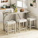 Dive into plush, ergonomic saddle seats, wrapped in linen and cushioned for hours of relaxation. Never run out of charge with our built-in power strip boasting several outlets - perfect for your devices. Crafted from solid wood, it’s a timeless centerpiece. More details, like the rustic wood grain and bentwood accent, add to the appeal. Tuck away stools to reclaim space effortlessly. Versatile for all your gatherings, meals, or work sessions. Elevate your lifestyle today! Bullet Point:Comfortable Seating: Settle into comfort with our ergonomically designed saddle seat cushions. Wrapped with breathable linen fabric and padded with high-density sponge, the button-tufted cushion will provide optimum comfort. Convenient Power Outlet: The bar table includes a built-in power strip, offering a convenient way to charge electronic devices or use small appliances while enjoying a meal or working at the table. There are 2 AC outlets and 2 USB ports, supporting several devices at the same time. Sturdy Wooden Construction: This console table set is crafted with a robust wooden frame for maximum longevity and stability. The solid rubber wood legs and bentwood reinforced structure ensure this set remains a centerpiece in your space for years to come. Space-saving Bar Set: The 3 counter height bar stools can be tucked underneath the table when not in use, saving precious floor space. Thus, this compact set is a perfect solution for small kitchens, breakfast nooks or even behind the couch areas. Versatile Design: Adorn your space with a set that blends seamlessly into any style. This versatile bar table and stool set is perfect for any activity, whether you’re hosting a party, enjoying a meal, or working on your laptop.