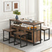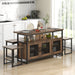 Seating 4 people comfortably, this dining table set effortlessly caters to family meals, casual meetings, or special occasions. The kitchen island offers ample storage space with adjustable shelves to accommodate items of different heights. Designed for comfort, the footrests on the cabinet and chairs ensure a relaxing seating experience even during longer periods. Reinforced with a sturdy metal frame, this kitchen island table set boasts durability and stability for long-lasting use. Its retro style adds a vintage touch to any room, making it a statement piece that enhances your interior. 4 Piece Kitchen Island Set: Designed to comfortably seat 4, this kitchen dining set includes 1 × kitchen island, 1 × bench, and 2 × chairs. It effortlessly accommodates family meals, casual meetings, special occasions, or any other seating needs. Perfect Storage Solution: The kitchen island boasts a spacious cabinet top, an open compartment, and 2 cabinets with doors, providing ample storage space for kitchen essentials. The 3-level adjustable shelves hold items of various heights, while the convenient handles and magnetic catches make accessing everything easy. Upgraded Sitting Comfort: Equipped with footrest on the cabinet and footrests on the chairs, this kitchen dining table set allows you to comfortably rest your legs for added relaxation. This thoughtful feature ensures comfort even during long periods of sitting. Safe and Stable Design: Supported by a heavy-duty metal frame, this kitchen island table set is built for long-lasting durability and stability. The anti-falling rails protect items from sliding off, while adjustable foot pads ensure perfect placement even on uneven surfaces for enhanced safety and sturdiness. Retro Style and Wide Use: This 4 piece dining table set infuses a vintage charm into any dining or kitchen space with its sophisticated aesthetic. More than just a dining set, it serves as a statement piece that elevates your interior styling. Note: There are 2 boxes and the receipt time may vary.