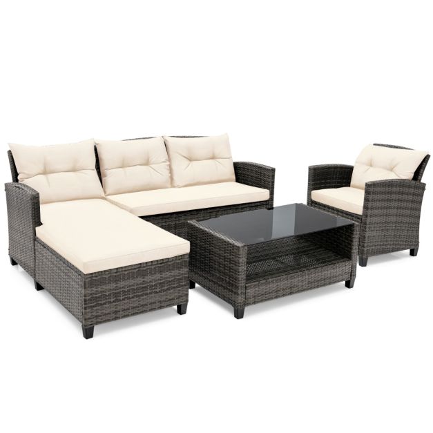- Materials: Premium PE Rattan, solid metal framework, shatter-resistant tempered glass, high-quality polyester fabric, and dense sponge for cushioning