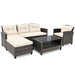 The allure of our patio ensemble comes from both its elegant appearance and its exceptionally durable construction. Handwoven with high-quality rattan, each piece showcases a refined look that stands strong against varied weather conditions. Supported by a resilient, powder-coated metal framework and equipped with anti-slip feet, this collection promises stability and longevity in your outdoor space.