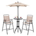 Package Contents: Set includes 1 Bar Table, 2 Folding Bar Chairs, 1 Umbrella, and an Instruction manual