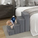 The 4-step dog stairs are designed to cater to pets who require assistance reaching higher places like beds, couches, or windowsills. In addition, the 4 steps can be freely adjusted to fit the height of your furniture. Each step of the pet climbing ladder includes a storage compartment, allowing you to store essential pet items. Meanwhile, the pet climbing ladder is foldable & easy to store, making it an ideal choice for limited corners. The main body of the foldable pet ramp is enveloped in soft dutch velvet, which provides a gentle surface that pampers your pet’s paws. Moreover, the treads are lined with a carpet top that offers additional traction, which is essential for preventing slips. Plus, the structure is fortified to prevent slipping with a non-skid bottom. Built to support pets weighing up to 10 kg, these steps are ideal for both small and medium sized dogs. The foldable dog steps is easy to assemble without tools. Bullet Points: Enhance Pets’ Accessibility: With a reasonable spacing between each step, the 4-step pet stairs provides a perfect way for dogs to access elevated surfaces without unnecessary strain. Furthermore, the 4 steps can be rearranged freely to meet your diverse needs. Innovative Storage Solution: The dog ramp combines 4 storage compartments, allowing pet owners to keep essential pet items, such as pet treats, pet toys, pet clothes. The 4 compartments are secured together with hook and loop fasteners, offering versatility as they can also function as separate storage units. Safety at the Core: Thanks to the non-skid bottom, the folding pet stairs ensures a secure grip on various surfaces. Moreover, the surface of each steps are lined with wear-resistant carpet fabric, offering an enhanced traction to prevent falls. Superior Comfort and Stability: Crafted with a focus on comfort, the main body of the foldable pet ramp is enveloped in dutch velvet, ensuring a gentle touch. Moreover, the premium MDF ensures a total weight capacity of 40 kg, making the dog ramp suitable for most small and medium sized dogs. Easy to Store and Install: For homes with limited space, these dog stairs are foldable, making it easy to slide them under furniture like couches or beds when not in use. Despite its foldable features, the dog steps are incredibly easy to assemble, requiring no tools.