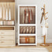 Tired of clutter? Make room for style and convenience with these sleek, spacious storage bins. Boasting a whopping 421L large capacity, this closet organizer is a smart storage solution! Featuring a hanging rod, 10 hangers, and extra bottom storage, all your clothes and accessories will find a home. Setup’s a snap - literally! No tools, no fuss. Plus, moving it is a breeze, thanks to smooth-gliding, lockable casters. Peek at your outfits instantly with crystal-clear, magnetically-sealed doors. Ideal for any room, it’s the stylish storage hero you’ve been waiting for. Don’t wait, organize in style today! Bullet Point:Spacious Partitioned Storage: This portable wardrobe features a 3-tier continuous space of up to 111 cm, designed to hang long dresses, coats, and other garments while holding some stacked items. It comes with a bamboo hanging rail and 10 adjustable hangers to meet different needs. Together with the bottom storage bin, it boasts an impressive capacity of 421L, capable of holding all your clothes in style! Easy to Set up, Stack and Store: Tired of complicated assembly instructions? Not with these storage bins with lid! Its snap structure and secure slide buckles mean you can set it up and stack it as needed in no time - no tools required. And when you need to store or transport it, just fold it up into its compact size. Move with Effortless Grace: Ever struggled to move a heavy wardrobe? Not anymore! This storage container comes with 4 universal casters, and the best part? Two of them are lockable. Whether you want to rearrange your bedroom or move it to a different room, you can glide it around with ease. A Clear View of Convenience: Say hello to transparent doors that give you a crystal-clear view of your clothes. And with magnetic door catches, you can rest assured that your closet organizer will stay tightly closed Versatile Use: Looking for a plastic wardrobe that fits seamlessly into any space? This one’s got you covered! It’s ideal for bedrooms, closets, laundry rooms, and dorms - basically anywhere you need to store your clothes, books, and other sundries.