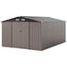 Color: Dark Gray/Dark Gray + light Gray/Wood Grain Color Material: Galvanized Metal, Color-coated Metal Sheet Product Dimensions: 426 cm x 300 cm x 197 cm (L X W X H) Entrance Size: 160 cm x 121 cm (L X H) Storage Capacity: 18.93 m³ Net Weight: 112 kg Box QTY: 1(May vary by batch) Package Includes: 1 x Outdoor Tool Shed 2 x Pairs of Gloves 1 x Wrench 1 x User’s Manual