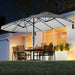 This 445 x 260 cm double-sided patio umbrella provides an extra large shading coverage, ideal for a variety of settings, from a lively backyard barbecue to tranquil poolside lounging. Not only offering unparalleled shade, it could also create a charming ambiance for your evenings with the built-in LED lights, which are powered by a solar panel, providing bright and inviting illumination for 6-8 hours. Furthermore, our umbrella includes a weighted base with 2 sandbags that could hold up to 80 kg sand, complement with 5+2+5 sturdy metal umbrella ribs and a safety latch, ensuring a secure and stable setup in slightly windy conditions, while the air vent on the top that further enhances overall stability and promotes ventilation. The premium polyester canopy with PA coating provides superior durability and protection against outdoor elements. Assembly and disassembly is also a breeze with the hassle-free crank handle. Whether day or night, our solar-light patio umbrella is designed to create the perfect outdoor sanctuary where you can relax, entertain, and enjoy the outdoor moments of life. Extra-Large Coverage: This double-sided patio umbrella measures 445 x 260 x 250 cm (L x W x H), offering a spacious shade area for your outdoor gatherings. It is ideal for patio dining settings, poolside relaxation, backyard events, and more. Solar Powered LED Lights: The umbrella ribs are equipped with 48 cool-white light beads, which are designed to brighten and enhance the romantic feel of your yard. The lights are powered by a solar panel, which could last for 6-8 hours after a full charge, saving energy. Note: It includes a handy switch, and we recommend turning off the power during the day to for better charging. Weight Umbrella Base Included: This large market table umbrella comes complete with a weighted base, including 2 sandbags that could withstand a weight of 80 kg, ensuring excellent stability. Moreover, it is constructed with 5+2+5 sturdy umbrella ribs and secured with safety latch for enhanced security. Note: The package includes a 38 mm adapter to fit other umbrella bases. Sandbag included, sand not included. Premium Double-Tiered Canopy: The canopy is crafted of premium 180GSM polyester fabric with PA coating, which is sun-protective, water-repellent, and fade-resistant, designed to handle the elements. Moreover, it features an air vent for optimal airflow and enhanced stability. Note: In severe weather, please close your umbrella to prolong its life. Easy Setup and Takedown: This patio umbrella comes in 2 sections and a base that can be effortlessly connected, and there is a hassle-free crank handle, making it easy to open and close the umbrella. Additionally, when not in use, the umbrella can be secured by the fixing strap, ensuring secure closure.