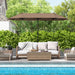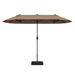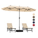 Embrace elegance and personalize your outdoor setting by selecting the perfect shade to complement your decor; available colors include classy Beige, sophisticated Gray, bold Navy, vibrant Wine, and earthy Tan. With these intuitive design features and a selection of attractive hues, this dual-sided umbrella seamlessly adapts to the aesthetic of any outdoor environment.