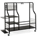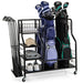 It offers additional storage solutions including a golf ball basket, 6 adjustable hooks, and 3 shelves for shoes and accessories. The detachable golf club rack features space for up to 14 clubs or flags, allowing for customization according to your needs. Crafted from powder-coated metal, this golf storage stand is robust enough to handle golf equipment. It boasts 4 smooth wheels for effortless mobility, including 2 lockable ones for stable stopping. This golf bag storage rack is an ideal solution for keeping all your golf gear neatly organized in one place. Dual Golf Bag Capacity: The golf storage organizer features a robust golf bag stand that comes with anti-falling metal crossbars, comfortably holding 2 standard-size golf bags. It is a perfect choice for family use. More Storage Solutions: Beyond just bag storage, the organizer boasts a specialized golf ball storage basket, 6 easily adjustable hooks for hanging equipment, and 3 shelves, making it effortless to store shoes, accessories, cleaning supplies, and more. Detachable Golf Club Rack: Tailor your storage needs with a detachable side golf club rack of the golf organizer, ideal for storing up to 14 golf clubs or golf flags. This feature allows for customization based on your particular gear collection. Built for Great Durability: Constructed from powder-coated metal, the golf storage stand is designed to withstand the weight of your golf equipment and frequent use. It will be a long-lasting golf partner in your garage, basement, golf club, etc. Smooth & Easy Mobility: Equipped with 4 smooth universal wheels, the rolling golf storage organizer provides the convenience of mobility. In addition, the golf storage rack contains 2 lockable wheels that ensure effortless and stable stopping.