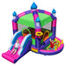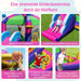 Our 5-in-1 bouncy castle is the best gift for children! This product provides multiple ways to play: it includes a jumping area, a long slide, an ocean ball pool, basketball hoop and ring-toss game area. Safe mesh net and enhanced handrails ensure the safety and durable bounce house. Your child can play happily with his friends here. The package comes with a detailed instructions that can help you build the castle quickly. In addition, the included ground stakes can fix the house on the ground. Whether summer or winter, outdoor or indoor, this bouncy castle is an amusement park for kids to spend wonderful time with their friends! Warning: 1. Ground pegs are used for lawn ground surfaces. Always ensure the bouncer and the air fan are secured to the ground with the pegs provided. Drive ground stakes completely into the ground to avoid tripping hazards. 2. Do not use in rainy, windy or extreme weather conditions. 3. Ensure active adult supervision at all times. Bullet Point: All-in-one Entertainment Center: Our bouncy castle includes a slide, jumping area, ring-toss game, ocean ball pool and basketball hoop. It allows your child and his friends to play together, thus expanding their minds and exercising their bodies. Bring More Coolness: Compared to other bounce houses, this product is designed with a sun roof that protects children's delicate skin from UV rays. Thus, when summer comes, they can enjoy a cool and comfortable paradise outside. Full of Security: There are 4 mesh walls around the jumping area to ensure the safety of the children. The slide uses raised handrails to prevent children from falling. In addition, a larger buffer platform allows children to use the long slide with ease. Selected Material and Firm Stand: Made of 420D Oxford cloth, this reliable bouncy castle can be used for years. the PVC coating makes the bouncy house more waterproof. More, 8 ground stakes also enhance the sturdiness of the castle. Quick Inflation and Sweet Accessories: Detailed instructions will be included in the package, which ensures that you can finish the setup quickly. The jump bed also comes with a carry bag, and a repair kit for you to fix some insignificant problems.