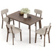 Our dining set includes a rectangular table and 4 upholstered chairs, ensuring ample seating for family meals or entertaining guests. With its warm-tone brown finishes and exquisite wood grains, this farmhouse wooden dining table set could also add a touch of rustic charm to your dining space. Crafted with sturdy rubber wood frames, the table and chairs offer exceptional durability and stability for long-term use. More than that, each chair is ergonomically crafted with a 6.5 cm thick seat cushion and curved backrest, and they adopt breathable linen fabric covering and ultra-soft sponge filling, providing optimal support during meals or gatherings. When not in use, 4 chairs can be conveniently stored under the table, making it suitable for small rooms and apartments. Complete 5-Piece Set: This 5-piece dining set includes a rectangular dining table measuring 120 x 75 x 75 cm (L x W x H) and 4 upholstered dining chairs measuring 49 x 46 x 82 cm (L x W x H). The set is perfect for family dinners, gatherings, or casual meals with friends. Sturdy and Reliable Construction: The dining table and chairs boast solid rubber wood supporting frames, which are sturdy and deformation-resistant, ensuring a stable dining environment for years to come. The table loads up to 125 kg, and each chair loads up to 120 kg. Ergonomic Design: The dining chairs are designed with 6.5 cm thick padded seat cushions and curved padded backrests, which could fit your body curve for optimal support. Additionally, upholstered in breathable linen fabric and soft sponge, these chairs are comfy for long-time sitting. Space-Saving Design: 4 chairs can be tucked under the table when not in use, thus this dining set is suitable for small rooms and apartments. Not only for maximizing your dining area's efficiency, it can also create a tidy environment for an easier life. Hassle-Free Maintenance and Assembly: The kitchen dining table set boasts a premium veneered MDF tabletop, which is waterproof and scratch-resistant, making daily cleaning a breeze. Additionally, with its simple structure and clear illustrations in the user’s manual, the table and chairs are easy to set up.