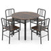 The kitchen chairs in the compact 5-piece dining set are ergonomically designed for an enjoyable dining experience. Moreover, the chairs can be conveniently tucked away underneath the table post-meal, making it perfect for smaller dining areas or intimate spaces. Additionally, the dining table set comes with a cleverly integrated storage rack beneath it, allowing you to efficiently arrange your dining necessities for easy access. Constructed with a robust metal frame, both the table and chairs offer exceptional durability and steadiness. Furthermore, the table is topped with a veneer finish, simplifying the cleaning process. The dinette set's faux wood finish, combined with metallic accents, brings a hint of classic charm to your living area. Versatile 5 Piece Dining Set: The versatile 5-piece dining ensemble encompasses a kitchen table measuring 100 x 76 cm (Dia. x H) paired with 4 armless chairs sized at 45 x 40 x 80 cm (L x W x H). Perfect for enjoying intimate meals or hosting cozy gatherings, this dining set is an ideal choice. Space-saving Design: Boasting a space-saving design, the armless chairs can be neatly tucked under the table post-meal, catering well to those with limited space like apartment residents or individuals with compact rooms. Open Storage Shelf: The round table features a storage rack, ideal for organizing wines, snacks, tableware, tissues, or books within easy reach during dining occasions. With a ground clearance of 45cm, the storage shelf ensures ample legroom for comfortable seating. Sturdy and Stable Construction: The dinette table and chairs boast legs made from a powder-coated metal frame, ensuring a long-lasting and sturdy construction. Furthermore, adjustable foot pads on both the table and chairs provide stability on uneven surfaces. Modern and Rustic Style Twist: The 4 pieces dining set showcases a rustic wood grain that adds a timeless appeal. Plus, the sleek line backrests infuse a modern touch, making it suitable for a variety of settings like kitchens, dining rooms, breakfast nooks, or restaurants.