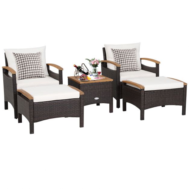 Color Palette: Rich mix brown PE rattan paired with elegant off-white cushions