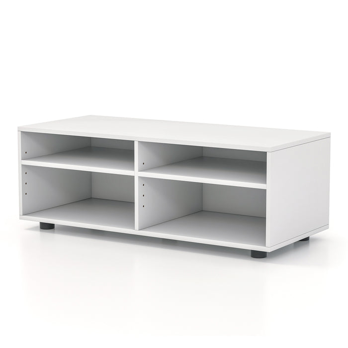 Equipped with four sizeable open compartments, this entertainment hub offers plenty of space to keep your electronics and media accessories like gaming consoles, projectors, and remote controls. These compartments are designed to keep your living room orderly while providing easy access to your belongings. With the added benefit of keeping your favorite records, CDs, and magazines tidily stored away, this TV stand ensures a pristine and inviting living area.