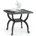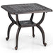 Step into the charm of yesteryear with our exquisite outdoor side table. Its breathtaking floral pattern in an enchanting antique copper hue oozes vintage elegance and sophistication. Crafted from rustproof cast aluminum, it resists rust and stands the test of time. Revel in its 2-tier design, boasting a capacious tabletop and handy storage shelf for all your outdoor essentials - drinks, snacks, or vases. Versatile and captivating, it perfectly graces any outdoor sanctuary. Worried about stability? Fear not! Our coffee table comes equipped with adjustable foot pads, ensuring unwavering support. Assembly? A breeze! Quick and easy instructions guarantee hassle-free setup, while minimal effort is required to keep its shining beauty intact. Revel in its effortless charm and bring your outdoor space to life. Elegant Floral Pattern: The outdoor side table features a stunning hollow-carved design, decorated with elegant floral pattern. Together with the antique copper color, it will add a touch of vintage elegance to your outdoor space. All-weather Cast Aluminum Construction: Made from high-quality cast aluminum, this square end table is built to withstand severe outdoor elements. Its lightweight yet sturdy frame boasts long-lasting durability and excellent resistance to rust. Versatile 2-Tier Structure: With a spacious tabletop and an additional storage shelf, this patio table provides a convenient spot to place afternoon tea, magazines or decorative items. It is perfect for any outdoor area, such as garden, patio, or balcony. Humanized Design: The 4 robust legs of this porch table are fitted with adjustable foot pads to ensure stability, allowing you to enjoy your outdoor activities without worrying about tipping or wobbling. Easy to Assemble and Maintain: This outdoor accent table comes with easy-to-follow instructions for quick and hassle-free assembly. Additionally, its cast aluminum construction makes it easy to clean and maintain, requiring minimal effort.
