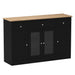 Colour: Black + Natural/White + Natural Material: MDF, Engineered Wood Product Dimensions: 140 × 40 × 90 cm (L x W x H) Inner Dimensions of Large Drawer: 58 × 28.5 × 8 cm (W x D x H) Inner Dimensions of Each Small Drawer:26.5 × 28.5 × 8 cm (W x D x H) Width of the Middle Compartment: 63 cm Width of Each Side Compartment: 33 cm Storage Depth: 35 cm Storage Height: 58.5 cm Net Weight: 52 kg Box QTY: 1 (May vary by batch) Package Includes: 1 x Buffet Sideboard 1 x Instruction Manual