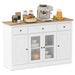 Looking for storage that’s as stylish as it is functional? This 140 cm buffet sideboard delivers both, featuring 3 smooth-gliding drawers and 3 spacious cabinets—including a glass-front central one to elegantly display your favorite dishware. The generous top surface doubles as extra counter space, while 3-level adjustable shelves let you customize storage for anything from canned foods to small appliances. Built with sturdy construction and including anti-tipping kits for added safety, the versatile cabinet transitions effortlessly from dining area to living room as a chic console or bar cabinet. Your clutter-free home starts here with our sideboard buffet cabinet! Large Storage Space: This 140 cm buffet sideboard features 3 drawers and 3 cabinets, including a large central cabinet with see-through doors for displaying your tableware. The spacious cabinet top is perfect for kitchen appliances, and works as an extra prep space. Customizable Shelves: Customize the inner space of the buffet cabinet to meet your storage needs with 2 adjustable shelves, each offering 3 height settings spaced 6.5 cm apart. The flexible setting makes it easy to organize items of different sizes, keeping everything tidy. Versatile Storage Cabinet: Featuring a chic two-toned design, the modern storage cabinet adds an elegant touch to any kitchen or dining area. With its versatile design, it also works perfectly as a coffee bar, console table, or display cabinet in your living room or study. Enhanced Quality and Stability: The kitchen buffet cabinet features a sturdy, thickened top for enhanced durability. For added safety, it is equipped with 2 anti-toppling devices, so that the cabinet stays safely anchored to the wall with no risk of tipping over. Reliable Design: Highlighted by round door knobs and quality metal hinges, the coffee bar cabinet ensures longevity and smooth usability. The low-maintenance surface makes cleaning easy and fuss-free, keeping the sideboard looking new for years.