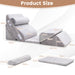 Filled with high-density memory foam, this bed pillow set can support all parts of your body, improve blood circulation, and be great for solving the problem of snoring or acid reflux. The incline cushion pillow set comes with a zipper for easy cleaning. In addition, the additional headrests can be detached or moved to support the waist. For your loved ones and friends, this folding adjustable pillow set will be a shortcut to a better quality of life. You can use it in different situations according to your needs so that you can read, work or sleep in a more comfortable position. If you are looking for such a product, do not hesitate to buy it! Multifunctional 6 Pieces Wedge Pillow Set: This 6 pieces wedge pillows set can support more than 12 positions and they can be used in combination or individually. You can combine them freely to provide better support for your upper and lower back head, legs, knees and buttocks. The bed wedge pillow will perfectly fit the curve of your body, thus providing a comfortable and relaxing experience when you read or are reading a book. Super Comfortable and High-Density Memory Foam: This folding wedge pillow set is filled with thickened 42D memory foam, which can provide better support for your whole body and achieve excellent pressure release. Besides, the surface of the pillow set is made of skin-friendly velvet material. The convenient hook and loop fastener design allows you to freely move or remove the headrest. Effective Pain Relief and Help You to Recover: This wedge pillow set can help you recover faster after shoulder, hip, or rotator cuff surgery. In addition, if you want to get rid of back pain, and snoring, or reduce acid reflux, then this back support pillow set will be your best choice. The incline cushion can improve blood circulation and effectively reduce body fatigue and pain. Easy to Clean and Maintain: This functional cushion pillow set comes with smooth zippers that make it easy for you to take the cover off. In addition, the pillow covers are machine washable. When you don't need to use it, you can use the vacuum bag to store them to save space, which allows you to take it anywhere. Perfect Gift for Family and Friends: If you're looking for a great gift that improves your quality of life and is good for your health, then you'll want to choose this 6 pieces memory foam wedge pillow set. Users can use it in bed, on the sofa or on the floor, which provides a more flexible way to rest and play and can meet the needs of people of all ages.
