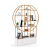 The round open bookshelf with white and gold accents can fit into both modern and contemporary homes alike. Not only does this bookcase offer display space on its shelves, but also provides 2 drawers to suit storage needs. Crafted with sturdy metal frame, the display shelf offers exceptional durability and stability. Thanks to the 2 anti-toppling kits, you can fix the bookcase to the wall to enhance stability and safety. Such well-designed bookshelf will surely be a perfect addition to your bedroom, living room, study, or office. If you are looking for a bookshelf like this, do not hesitate to place an order! Luxury Geometric Bookshelf: Blending with round silhouette and staggered shelves, this bookshelf exudes a high-end and elegant feel. The combination of gold lacquered metal frame and white board adds sophisticated flair to your home. Ample Storage and Display Space: Various open staggered shelves and 2 drawers provide the convenience of ample storage space and easy access to your books, collections, photos and potted plants. Besides, vertical structure makes full use space while keeping room in order. Heavy Duty Metal Structure: Made of powder-coated metal frame, the modern standing bookcase presents great sturdiness and durability, which is a reliable addition to your living space. The protective pads at the bottom are provided to avoid scratches. Secured by Anti-Tippling Kits: For reliable structure, the 2 anti-topping kits on the back can be attached to the wall, thus preventing the bookcase from falling accidentally. The display shelf is more stable than other shelves and brings full sense of security for family use. Multipurpose Design: The round open bookshelf wisely marries form, style and function, making it ideal for living room, bedroom, study and office. More than an etagere bookcase, you can use it as a display shelf, storage rack or plant stand.