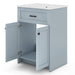 Color: Grey Material: Ceramic Sink + MDF Overall Dimension: 60cm x 46cm x 86cm (L x W x H) Sink Dimension: 42cm x 27cm x 11.5cm (L x W x Depth) Cabinet Dimension: 56cm x 41cm x 52cm (L x W x H) Faucet Opening Diameter: 3.5cm Drainage Hole Diameter: 4.5cm Total Weight Capacity: 123kg Net Weight: 27.6kg Box QTY: 1(May vary by batch) Package Includes: 1 x Bathroom Vanity with Sink 1 x User Guide