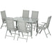 The highlight of this set is the six foldable chairs fitted with adjustable backrests, offering five different angles to suit your comfort needs. The blend of style and functionality makes it a breeze to tailor your seating experience for optimal relaxation. Their foldable design ensures that these chairs can be easily relocated or stowed away to maximize your outdoor area when not in use.
