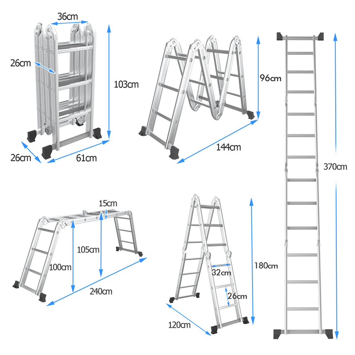 Presenting the 7-in-1 alloy ladder—the perfect solution to your everyday troubles. Comprised of four sections seamlessly fused together by robust joints, this ladder can be swiftly transformed to suit a plethora of tasks. Be it a straight ladder for changing a light bulb or a step ladder for some painting work, this ladder has got your back!