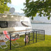 Are you looking for a premium solution to provide your pets with a secure and versatile space? Our 8 panels dog playpen includes two locks for enhanced safety, a convenient door for easy access, and the flexibility to customize the shape to suit your space effortlessly. Crafted from premium metal material with thickened pipes and rust-resistant paint, this playpen ensures durability and stability for indoor and outdoor use. Besides, this pet panel requires only three simple steps: aligning panel holes, securing with stakes, and locking the door latch. The playpen also features more exquisite details such as anti-slip footpads, reliable mesh fencing, sturdy metal stakes, and rounded corners for added safety. Trust in our playpen to create a safe and comfortable environment for your furry friends. 2 Sizes for Your Choice: This 8 panels dog playpen provides your pets with a secure and versatile space. We provide 2 options for you to choose: 60 cm playpen for puppies and small-sized dogs,and 80 cm for small and medium-sized dogs. Safe Dog Playpen: Equipped with a reliable lock/two reliable locks to enhance safety, you can feel confidence with this pet pen fence. And the door is convenient for pets’ entry and exit. It also comes with anti-slip footpads for floor protection, and sturdy metal stakes enhanced the overall stability. The rounded corners ensure a safe use. Premium Metal Material: Made of thickened metal pipes, this pet panel is sturdy enough to protect your pets. The surface is full paint protected, which is stable for indoor and outdoor use. Additionally, the reliable mesh fence offers good sealing properties and is not easy to be damaged by pets. Easy to Assemble: To set up this adjustable panel is a breeze, which only needs 3 simple steps. STEP 1: Align the holes of 2 panels. STEP 2: Use the stake to through the 2 panels. STEP 3: Push the door latch and lock. Plus, it can be folded to save space. Customizable Shapes and Wide Application: You can tailor the shape of the playpen to octagon, square, rectangle, or an irregular shape, which can fit different spaces. Hence, it is suitable for both indoor and outdoor use, such as living room, camping, RV, yard.