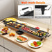 With dimensions of 89 × 22cm, the expansive cooking surface easily accommodates 8-10 people, featuring a nonstick coating to ensure easy cleaning after use. The teppanyaki grill offers 4 adjustable temperature settings ranging from 100 to 220℃, allowing for versatility in cooking a variety of dishes. Made from die-casting aluminum, this long griddle is reliable and efficient, designed with a built-in thermostat for quick heating. The tabletop BBQ grill is perfect for both indoor and outdoor use, whether for family gatherings, BBQ parties, and outdoor excursions. Safety is a top priority with overheat protection, providing peace of mind while you cook up a storm. Large and Nonstick Cooking Surface: This electric griddle boasts a large grilling area measuring 89 × 22cm, serving 8-10 people effortlessly. With a nonstick coating, it is easy to clean the cooking surface. The equipped drip tray and 6 wooden spatulas, the teppanyaki grill offers convenience for your cooking needs. 4-Level Adjustable Temperature: Designed with a controller, this tabletop BBQ grill features 4 adjustable temperature settings –1st gear (100℃, 1.5 mins), 2nd gear (120℃, 3 mins), 3rd gear (150℃, 5 mins), 4th gear (220℃, 12 mins). Whether cooking pancakes, potatoes, steak, bacon, or fish, you can find the optimal setting. High Performance and Safe Design: The electric grill promises fast warming and high efficiency thanks to its built-in thermostat. Please preheat for 1.5 mins in advance. With overheat protection, security is ensured by automatically shutting off heating when the temperature exceeds safe limits. Reliable Aluminum Construction: This long griddle is made with die-casting aluminum that consists of a thermal conductive layer, alloy substrate layer, reinforced wear layer and nonstick coating. Suitable for Indoor and Outdoor Use: Thanks to non-slip foot pads, this teppanyaki grill is stable on various tabletops, making it an ideal choice for family gatherings, barbecue parties, and outdoor adventures like camping or RV trips. The insulated handles on both sides enable you to move the electric grill easily.