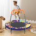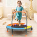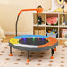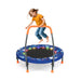 The colorful LED lights on the jumping mat offer 3 lighting modes. Designed without springs, this mini trampoline for kids uses bounce tension bands for a safer and more uniform bounce. The powder-coated frame and non-slip foot pads ensure stability and durability. Easy to assemble and foldable for storage, this EN71 and ROHS. compliant trampoline is ideal for indoor or outdoor use, offering a secure and entertaining playtime option for kids. Jumping with LED Lights around Kids: The vibrant LED lights around the jumping mat have 3 lighting modes (steady on/flashing/off) and come with a battery box with a switch button for easy control. Note: require 2 AA batteries (not included). Springless Trampoline for Enhanced Safety: Compared to trampolines with springs, this small trampoline uses 20 bounce tension bands to offer a more responsive and even bounce, reduce the chance of pinched fingers or toes, and provide long-lasting durability. This design also makes it ideal for indoor use due to quiet bouncing. Safety Comes First: Parents can have peace of mind knowing this kids trampoline complies with EN71 and ROHS. Complete with a comfortable foam handrail, high-resilient and anti-skid jumping mat, and padded safety cover, it provides a secure environment for your children to play. Heavy-Duty Construction: Built with a powder-coated frame, this toddler recreational trampoline features a sturdy and stable structure that ensures safe and secure bouncing fun. The non-slip and noiseless foot pads add extra stability. Foldable and Portable Design: This kids trampoline allows for easy assembly and disassembly with push-in legs. More, the trampoline frame is foldable for storage, making it the perfect choice for families seeking functional, space-saving solutions.