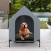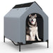 Provide Your Pet with a Comfortable and Practical Shelter Solution! There are 3 size options for you to choose from for puppies, small-sized, medium-sized, and large-sized dogs, and it is necessary to choose a comfortable house according to your dog's height and length. The canopy is crafted of 600D oxford cloth with waterproof PVC coating, which offers superior sun and rain protection, ensuring your pet stays dry and comfortable. And constructed of heavy-duty metal tubes and reinforced by anti-slip covers, this dog house provides a stable and secure shelter for your pet. The elevated design also keeps your furry friend away from wet and hard ground. Additionally, the mesh fabric dog bed is detachable for easy maintenance, keeping clean and hygienic. When indoors, it can be used as a dog bed without a cover for comfy resting, and when outdoors, it can be used as a dog house for better protection. S Spacious and Elevated Design: The dog house measures 91 x 64 x 86 cm (L x W x H), which is ideal for small-sized pets up to 30 kg (Note: Please measure the body length and height of your pet before purchase). Moreover, the 14 cm elevated design keeps your pet off damp ground, promoting airflow and ensuring a comfortable resting space. M Spacious and Elevated Design: The dog house measures 110 x 75 x 106 cm (L x W x H), which is ideal for small/medium-sized pets up to 40 kg (Note: Please measure the body length and height of your pet before purchase). Moreover, the 16 cm elevated design keeps your pet off damp ground, promoting airflow and ensuring a comfortable resting space. L Spacious and Elevated Design: The dog house measures 132 x 85 x 114 cm (L x W x H), which is ideal for small/medium/large-sized pets up to 50 kg (Note: Please measure the body length and height of your pet before purchase). Moreover, the 18 cm elevated design keeps your pet off damp ground, promoting airflow and ensuring a comfortable resting space. Better Protection for Sun and Rain: The canopy is crafted from robust 600D Oxford fabric with a waterproof PVC coating, providing superior protection against outdoor elements. Additionally, there are 2 roll-up mesh windows on the roof, offering ventilation while keeping out the sun and rain. S Sturdy and Stable Construction: This elevated dog house is supported by a high-strength metal frame, providing structural support and ensuring long-lasting durability. Besides, it boasts anti-slip covers for better stability, preventing any wobbling or tipping. M Sturdy and Stable Construction: This elevated dog house is supported by a high-strength metal frame, providing structural support and ensuring long-lasting durability. Besides, it boasts a U-shape supporting bar and anti-slip covers for better stability, preventing any wobbling or tipping. L Sturdy and Stable Construction: This elevated dog house is supported by a high-strength metal frame, providing structural support and ensuring long-lasting durability. Besides, the reinforced bottom with additional supporting bars and anti-slip covers ensures stability, preventing any wobbling or tipping. Effortless Cleaning for Great Convenience: The dog bed features a high-density mesh fabric mat that is breathable, scratch-resistant, and easy to clean. Simply rinse and wash for hassle-free maintenance, keeping your pet's resting area fresh and hygienic. 2-in-1 Multifunctional Design: The canopy can be detached, thus you can easily convert the dog house into a comfortable dog bed, which is suitable for both indoor and outdoor use. Besides, with its simple structure and numbered parts, it is easy to set up this dog house with no tools required.