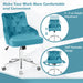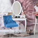 This brand new velvet office chair which is stylish in appearance and practical in function to keep you comfortable all day! Soft and warm velvet fabric provides a comfortable touch. The ergonomic backrest and armrest can effectively relax your back and hands, so that you will not feel tired after sitting for a long time. The adjustable seat height will match up various heights of tables for your convenient use. Five wheels on the base offer easy and smooth motion on the floor. It’s definitely a perfect addition for office, study and other occasions!Height Adjustment and Rocking Mechanism: Considering different desk heights and personal habits, the home office chair features high-quality gas cylinder to adjust the seat height (50-64cm) to help you find the most comfortable position. And the tilt rocking mechanism allows you to lean back for extra comfort. Soft Velvet Material and Sturdy Construction: Covered with skin friendly velvet fabric and filled with high density sponge, this office chair provides a soft touch and comfortable sitting feeling. The wide 5-claw metal base ensures extraordinary stability, which makes the desk chair strong enough to support up to 120kg. Ergonomic Backrest and Armrest: With an ergonomic high back, our velvet office chair can perfectly fit the curve of human body and relieve back fatigue. In addition, the arc armrests in moderate height can effectively relax your hands and create a more comfortable experience. Smooth Casters for Flexibility: The rolling computer chair has 5 mute universal wheels, which are non-slip and wear-resistant, while also effectively preventing scratches on the floor. The great flexibility enables this task chair to move smoothly and quickly in all directions, ensuring multi-tasking convenience. Wide Range of Applications: This swivel executive chair perfectly blends retro and trendy elements. The classic button-tufted design and decorative nail heads create a gorgeous and elegant appearance, which makes the vanity chair complement a variety of home decoration styles. The leisure chair is suitable for bedroom, study, office, etc.