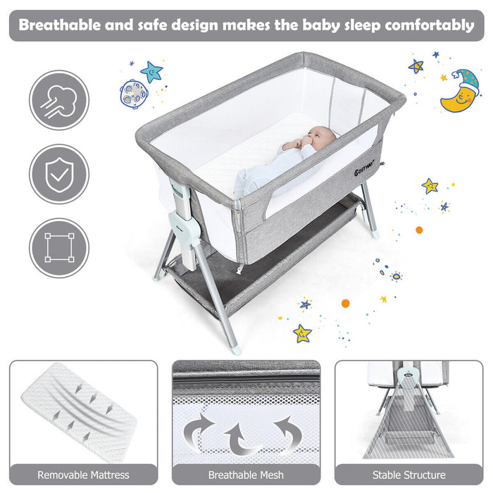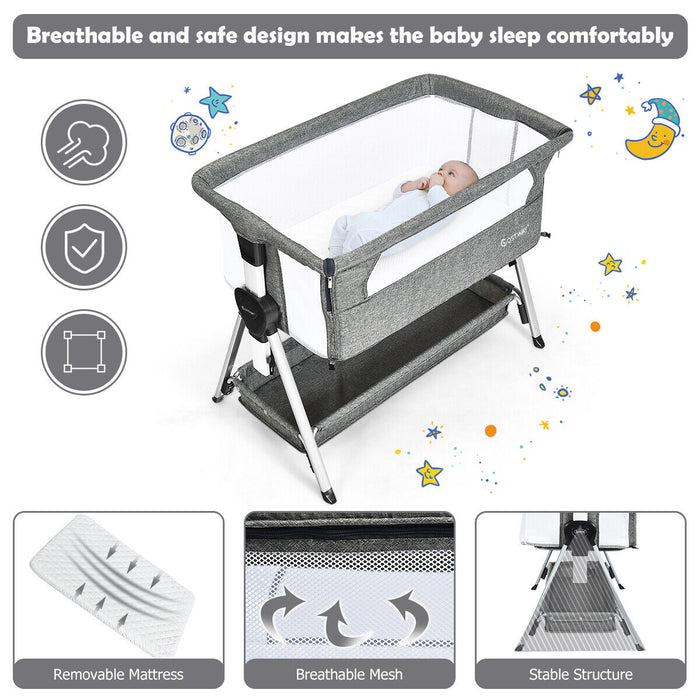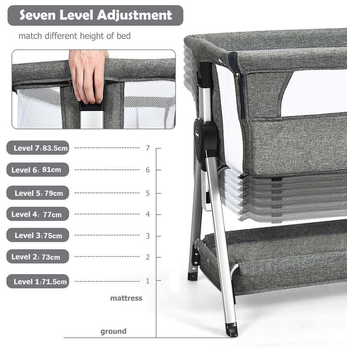 The bedside crib boasts 7 adjustable height options to accommodate different bed heights. Additionally, the specially designed side bassinet can be tilted at a 5° angle, allowing for comfortable feeding sessions that protect your baby from choking hazards.