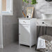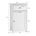 Despite offering ample storage, our floor cabinet’s design ensures it doesn’t overwhelm your space. Whether nestled in a bathroom corner or standing proudly in your bedroom, it manages to make a statement while staying compact. The sturdy build supports a weight capacity of up to 30 kg on the tabletop, 10 kg in the drawer, and 15 kg on each shelf, making it as practical as it is stylish.