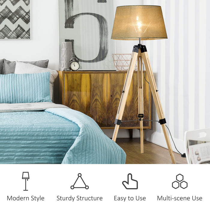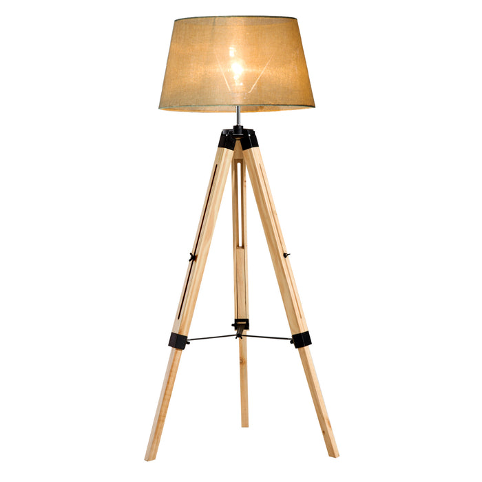 The seamless blend of wooden legs and the tasteful grey linen-touch fabric lampshade exudes elegance, making this tripod lamp a focal point in any setting. It's the perfect attribute to any room, whether you're enhancing your home, office, or commercial space such as a restaurant or hotel.